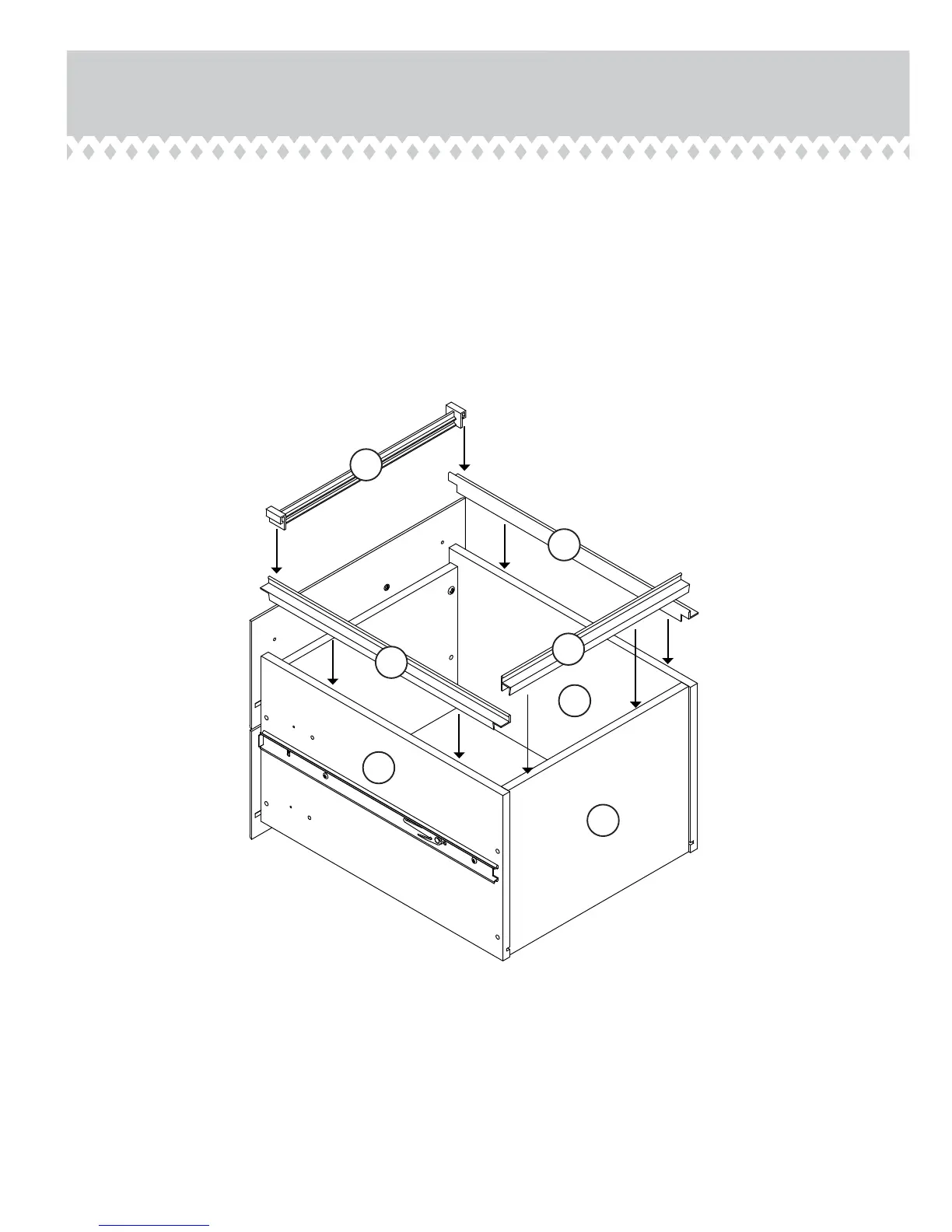 Push the FILE HANGER (E1) onto the FILE RAILS (C1).