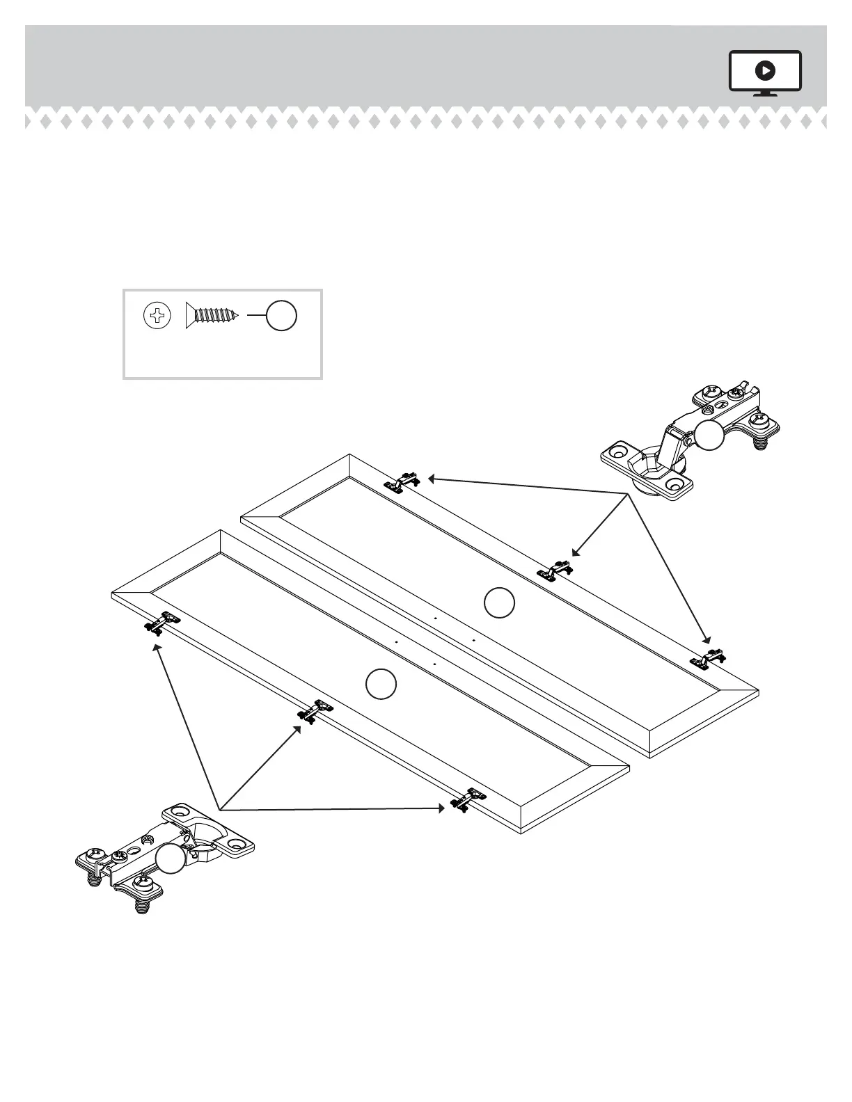 Fasten three HINGES (Z) to each DOOR (H). Use twelve
