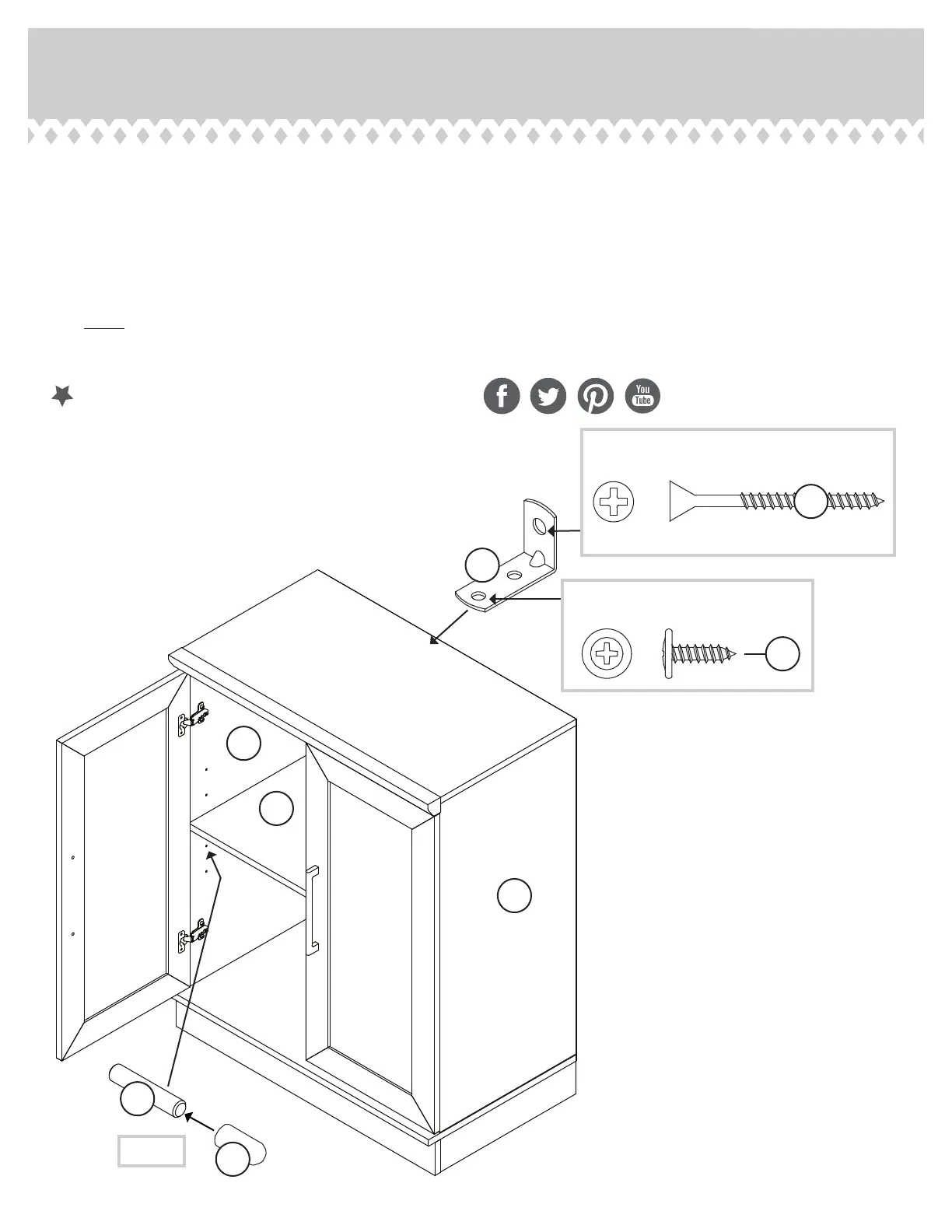 in the ENDS (A and B). Set the ADJUSTABLE SHELF (G) onto the METAL PINS.