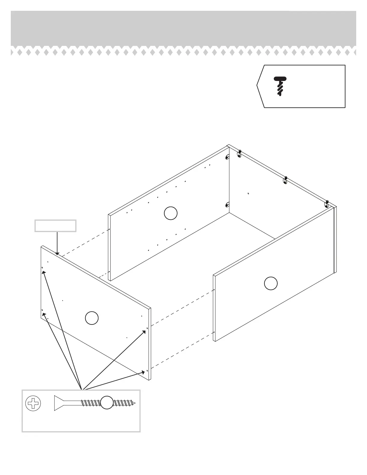 Fasten the BOTTOM (D) to the ENDS (A and B). Use four