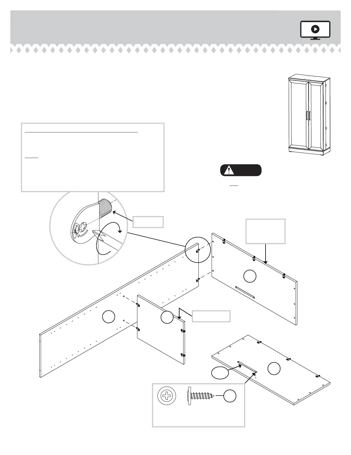 Fasten the LARGE SHELF (I) to the LARGE END (B2). Tighten