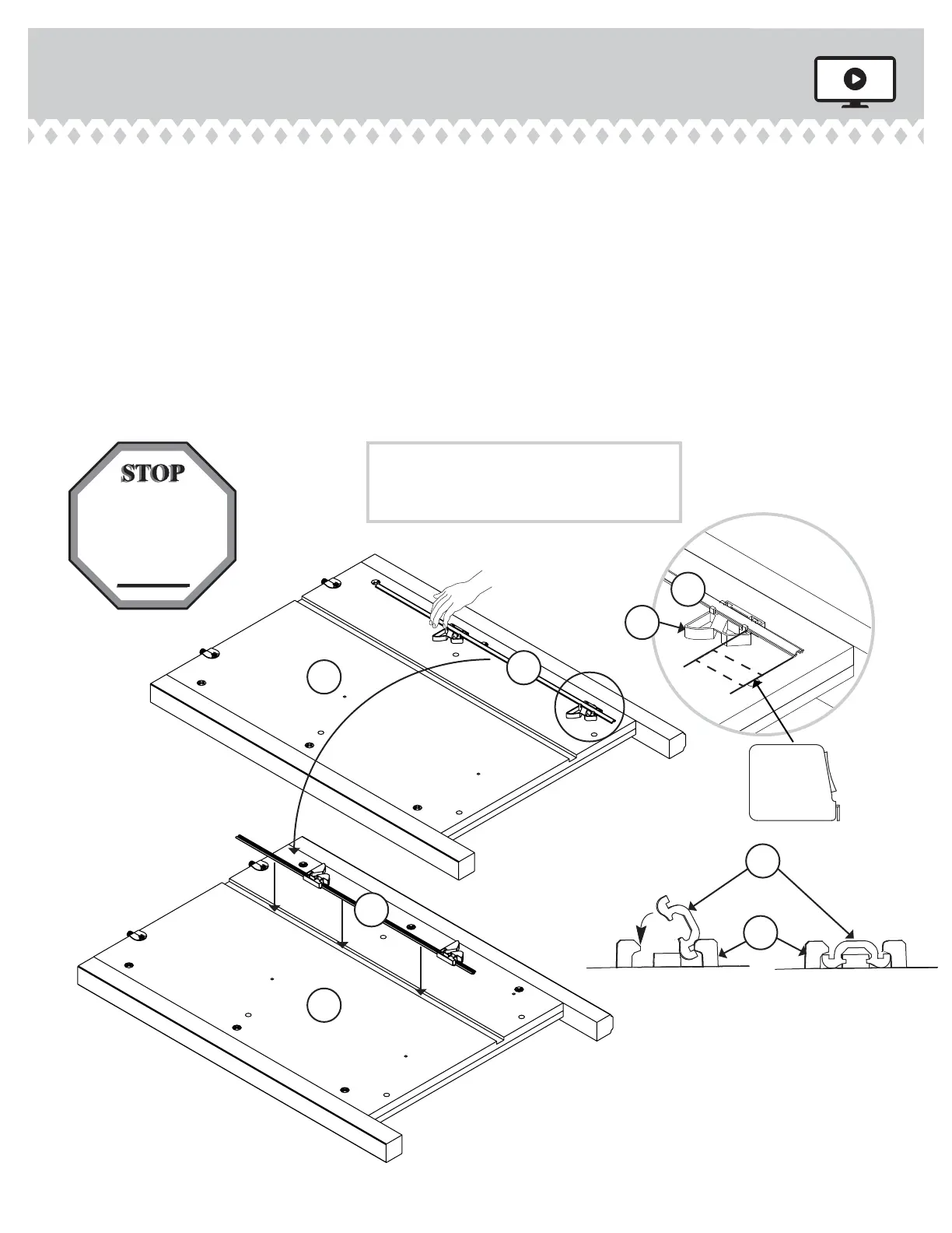 Diaram 4. Repeat the SAFETY STOP / TRACK ATTACHMENT for the next SAFETY STOP while holdin the previously