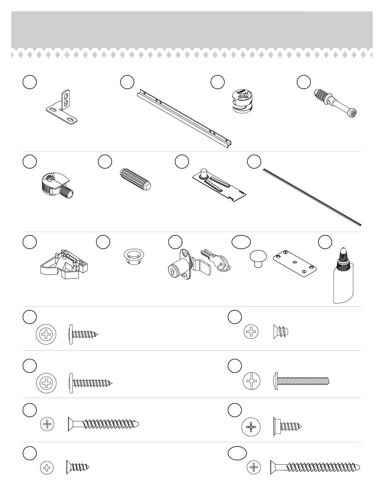 å Screws are shown actual size. You may receive extra hardware with your unit.