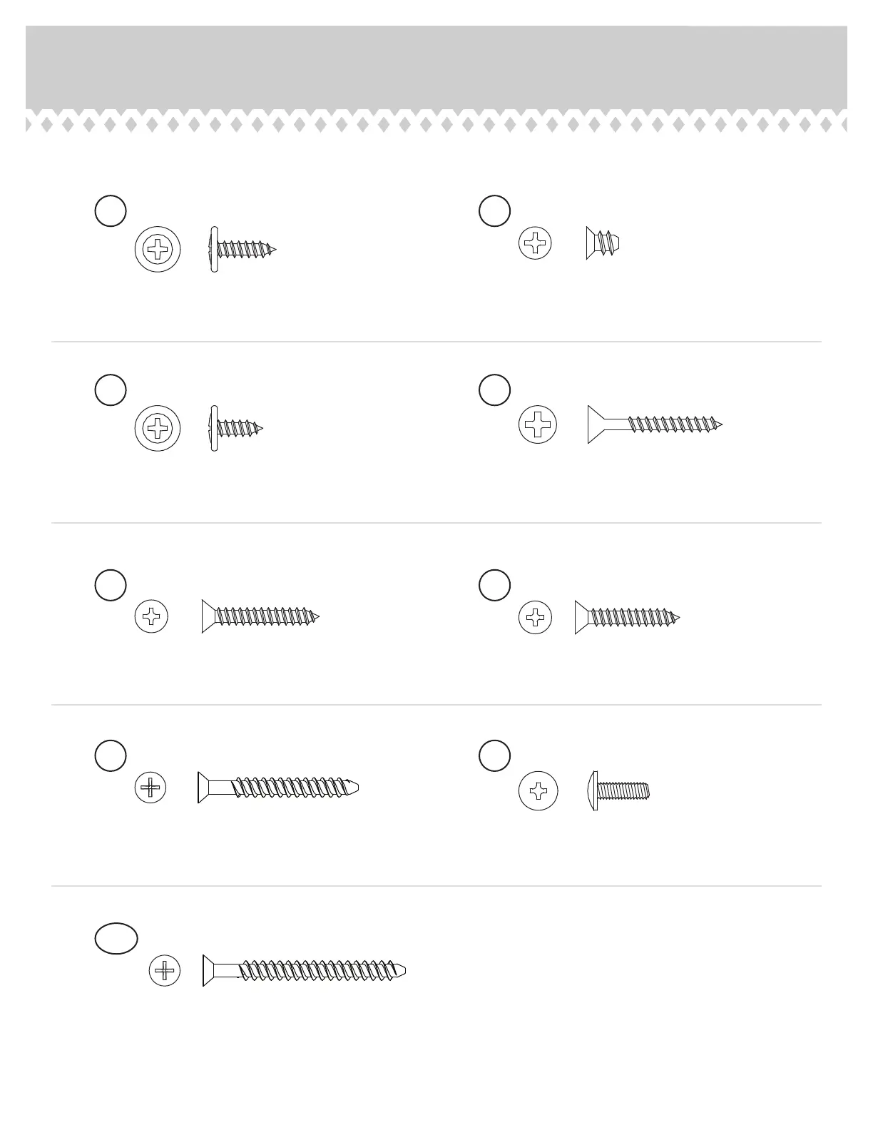 å Screws are shown actual size. You may receive extra hardware with your unit.