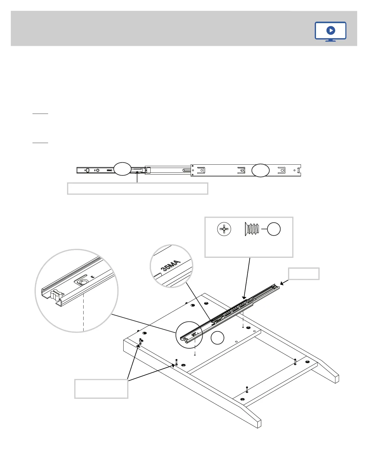 NOTE: The EXTENSION SLIDES (35MC) will be used later for the DRAWER.