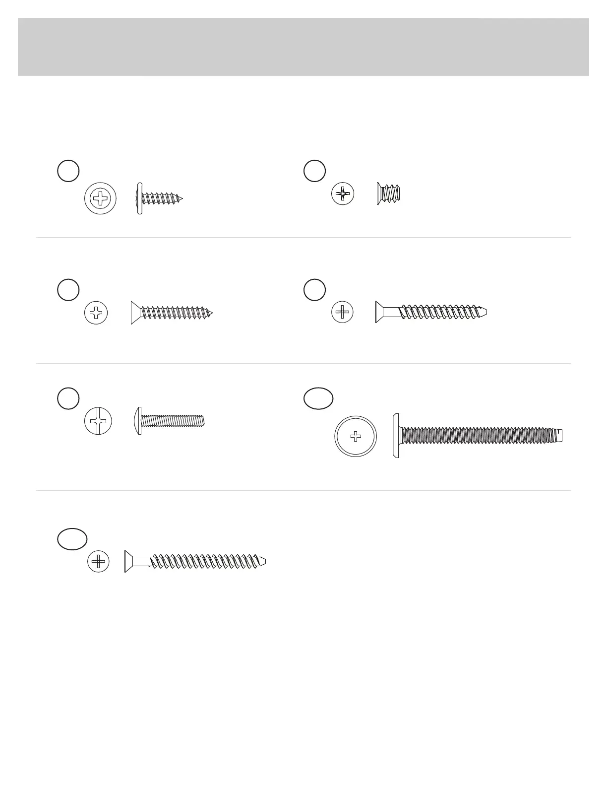 å Screws are shown actual size. You may receive extra hardware with your unit.