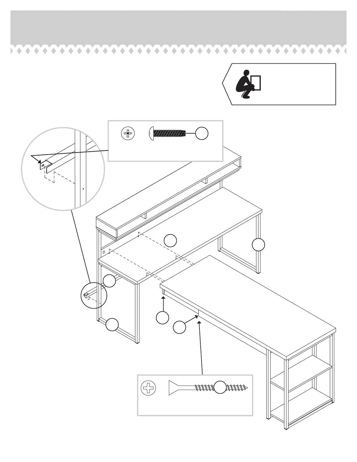 Fasten the LOWER MOLDING (Y) to the DESK FRAMES (V). Use