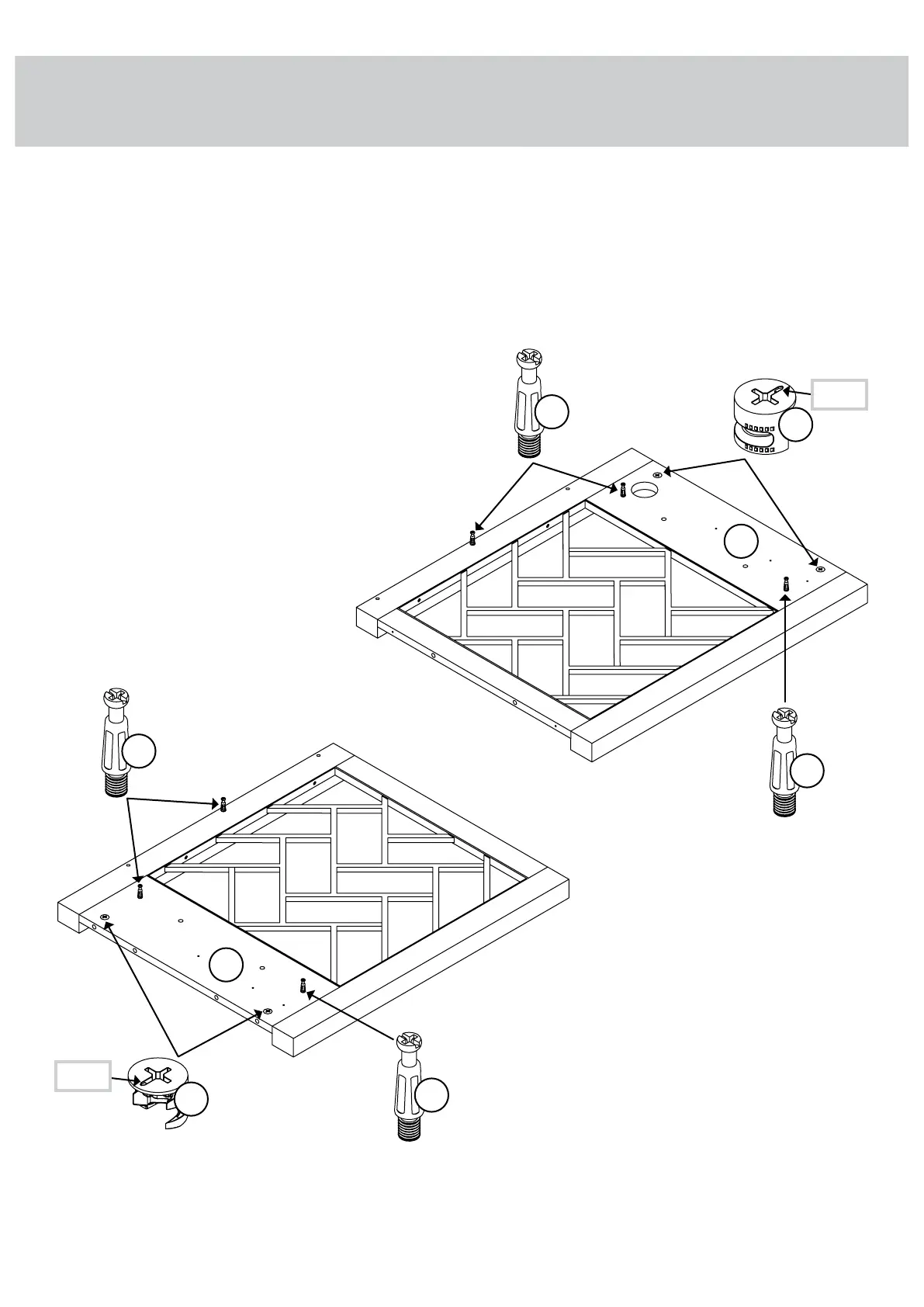 Turn six CAM SCREWS (3) into the ENDS (J and Z).
