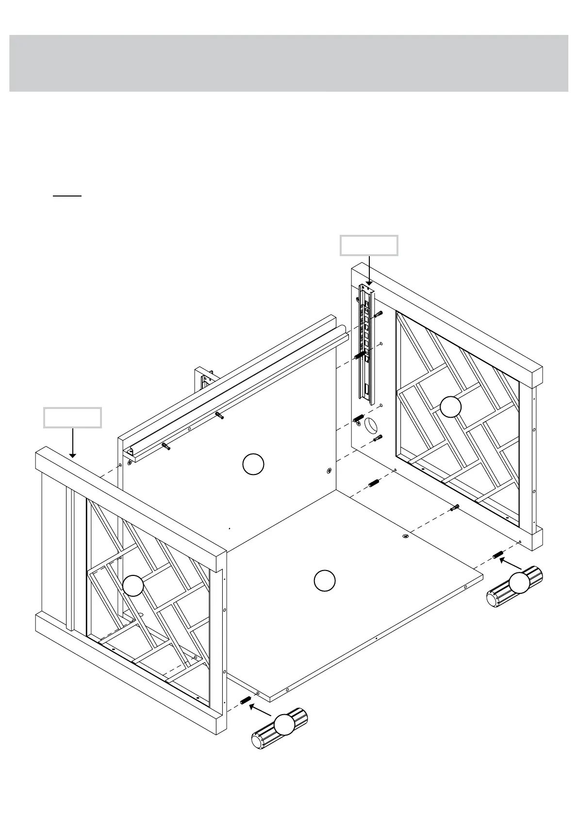 NOTE: Be sure the WOOD DOWELS in the ENDS insert into the