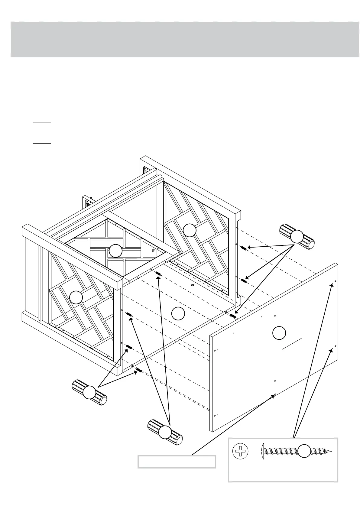 NOTE: Be sure the WOOD DOWELS in the BOTTOM insert into
