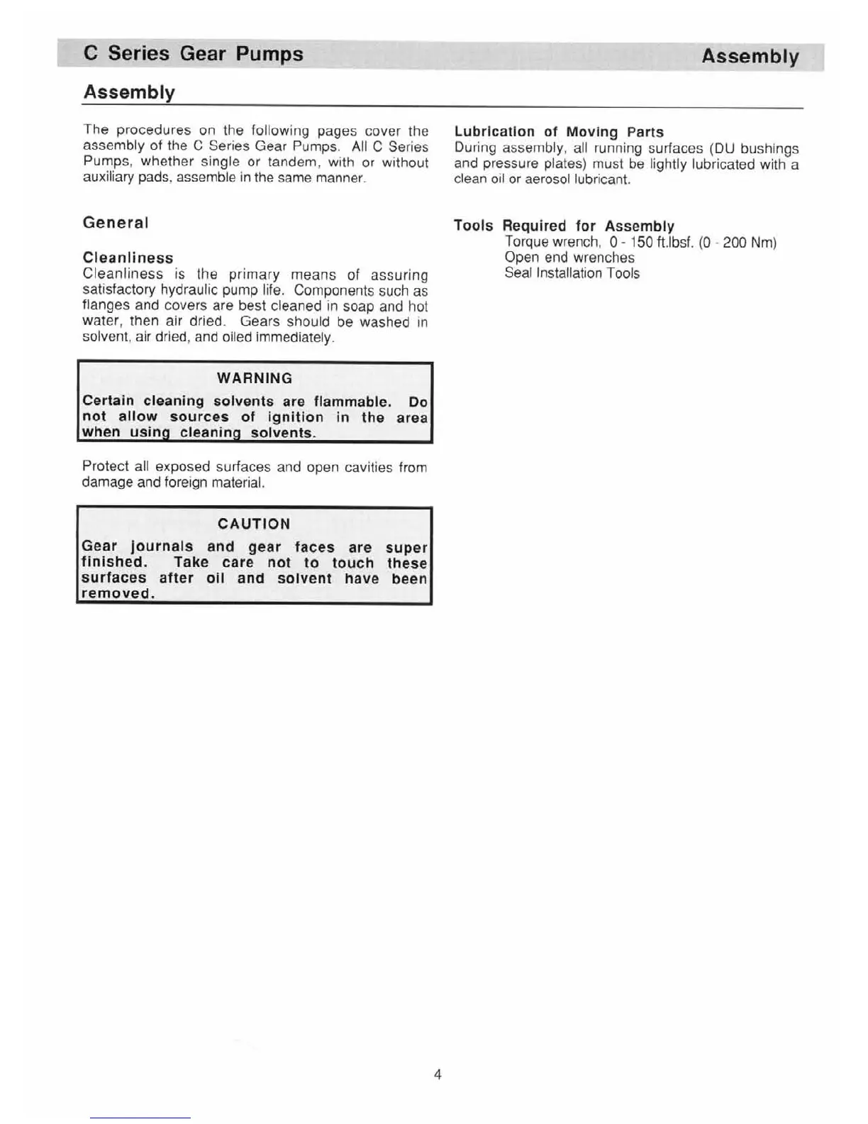 Sauer Danfoss CP180 - Assembly; General; Cleanliness; Lubrication of Moving Parts