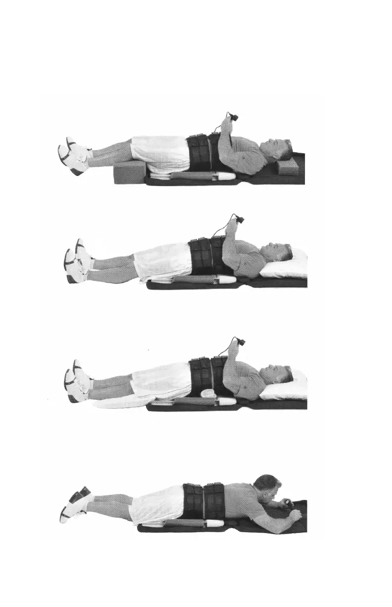 D. Liggen op de buik voor meer extensie (achterover buigen) van de onderrug.