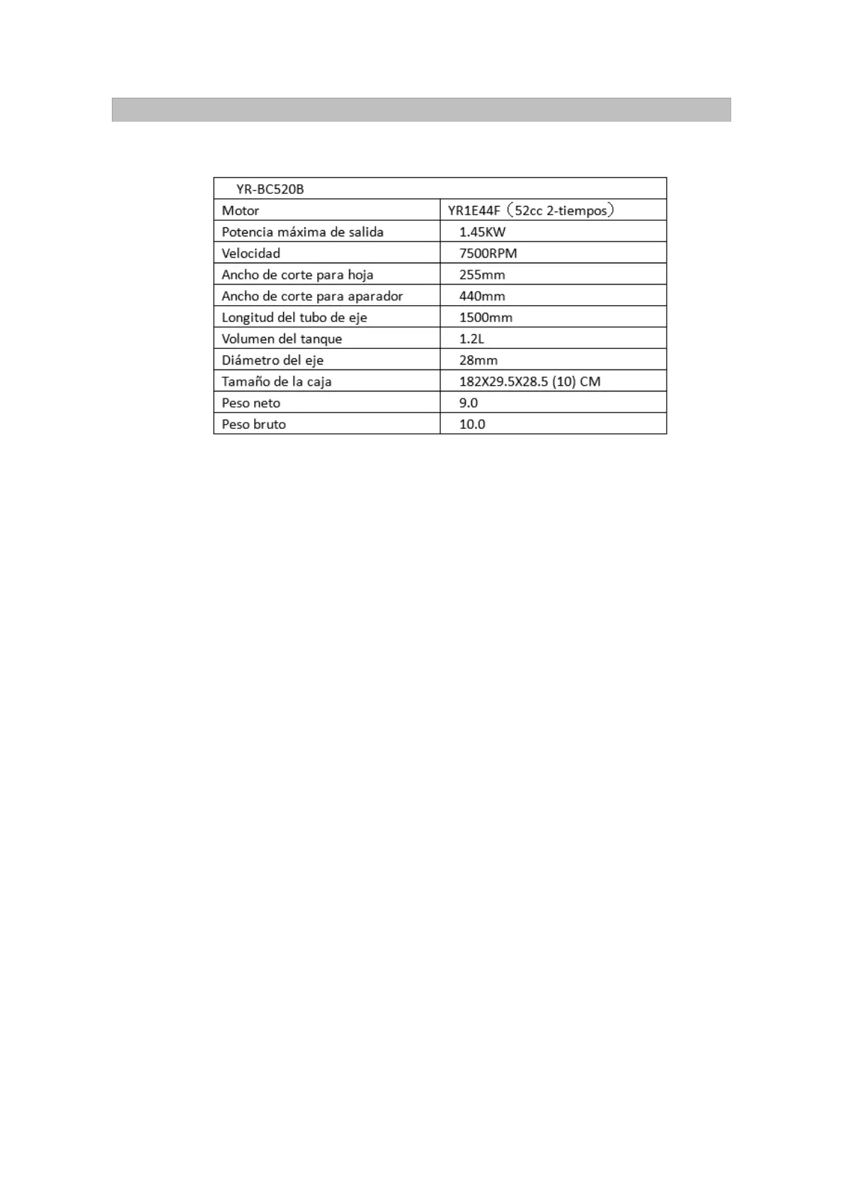Saurium YR-BC520B - Especificaciones Tecnicas