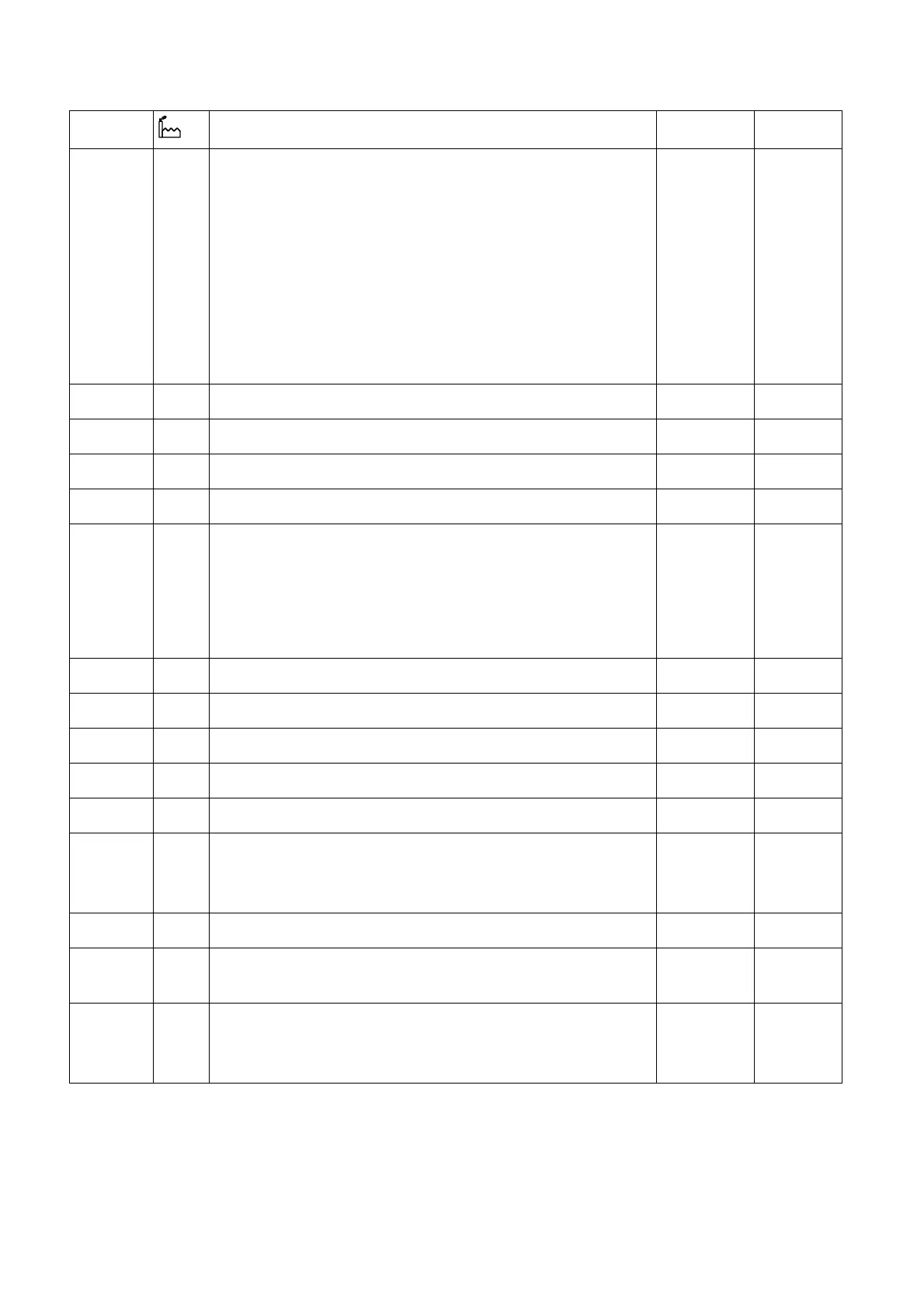 Parameter Description Range Step value
