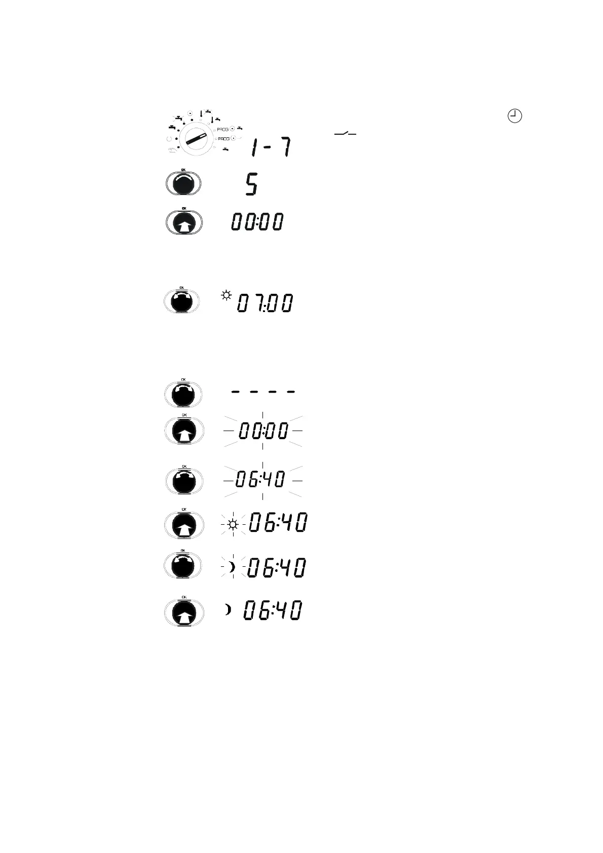 1. Set the bottom rotary switch to PROG