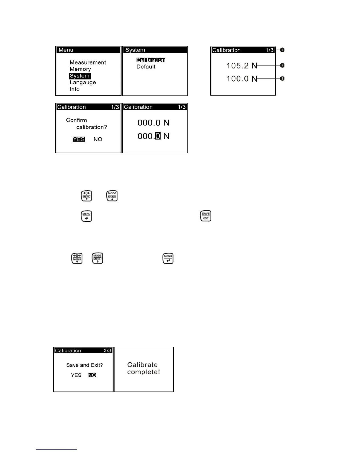 If "YES" is selected, "Calibrate complete!" is displayed, see 5-3(b).