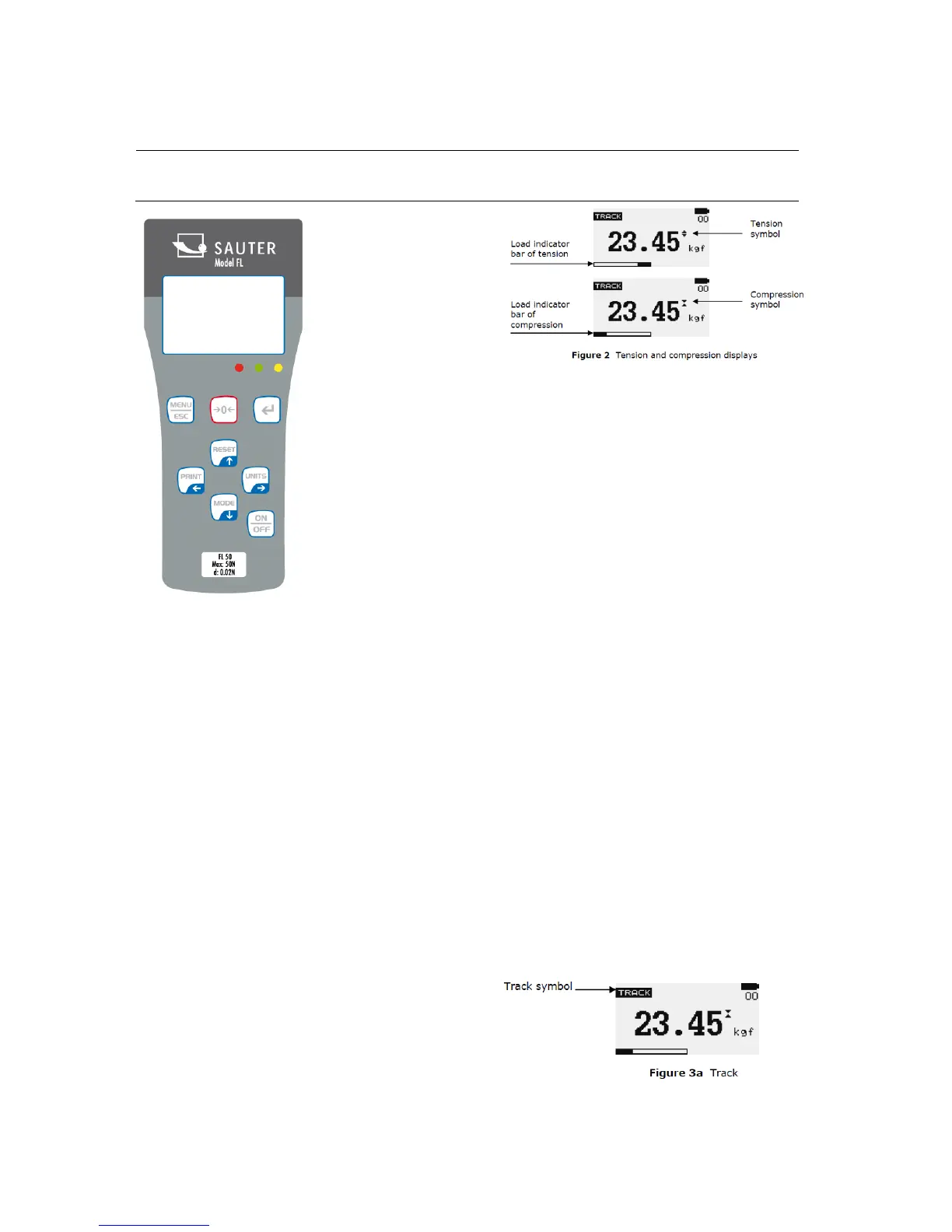 left. For compressive forces the indicator bar is moving