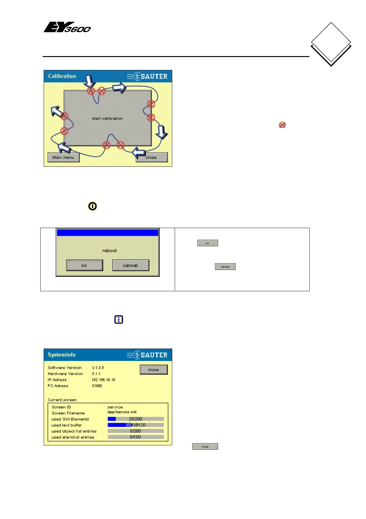 Press Reboot to restart the touch-panel. This may be useful in certain cases; after