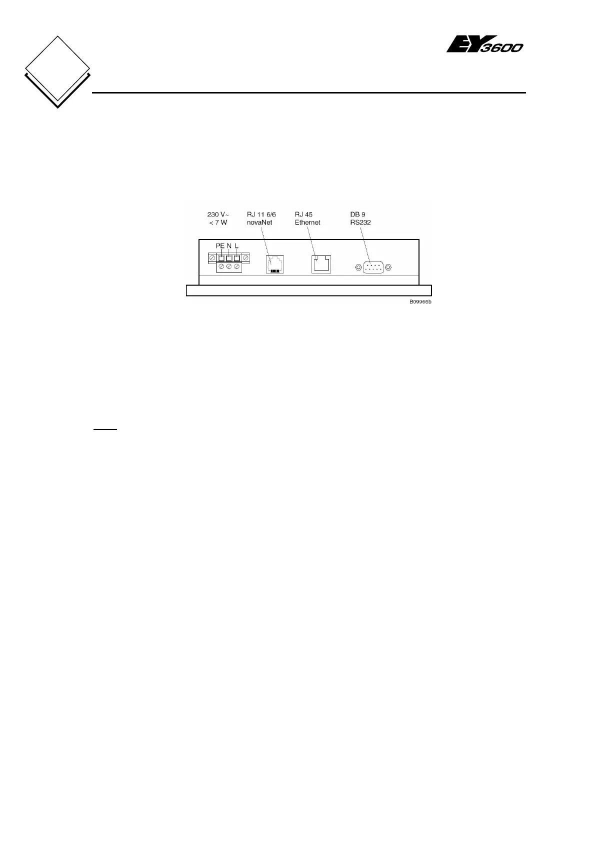 supply (230 V~ or 115 V~) with an earth protection wire and to the EY3600 novaNet