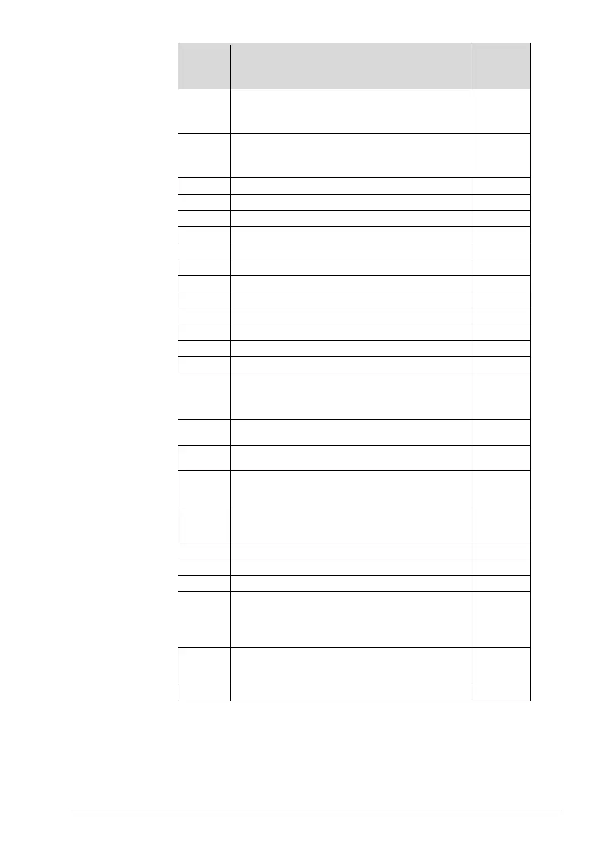 Table 13. Parameter list