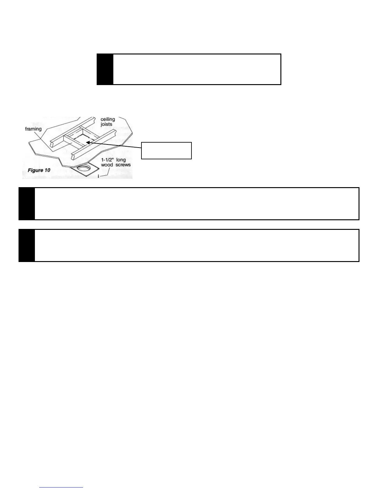 When passing through a flat ceiling install a Box/Wall thimble. Cut a 9” square hole and frame as shown in