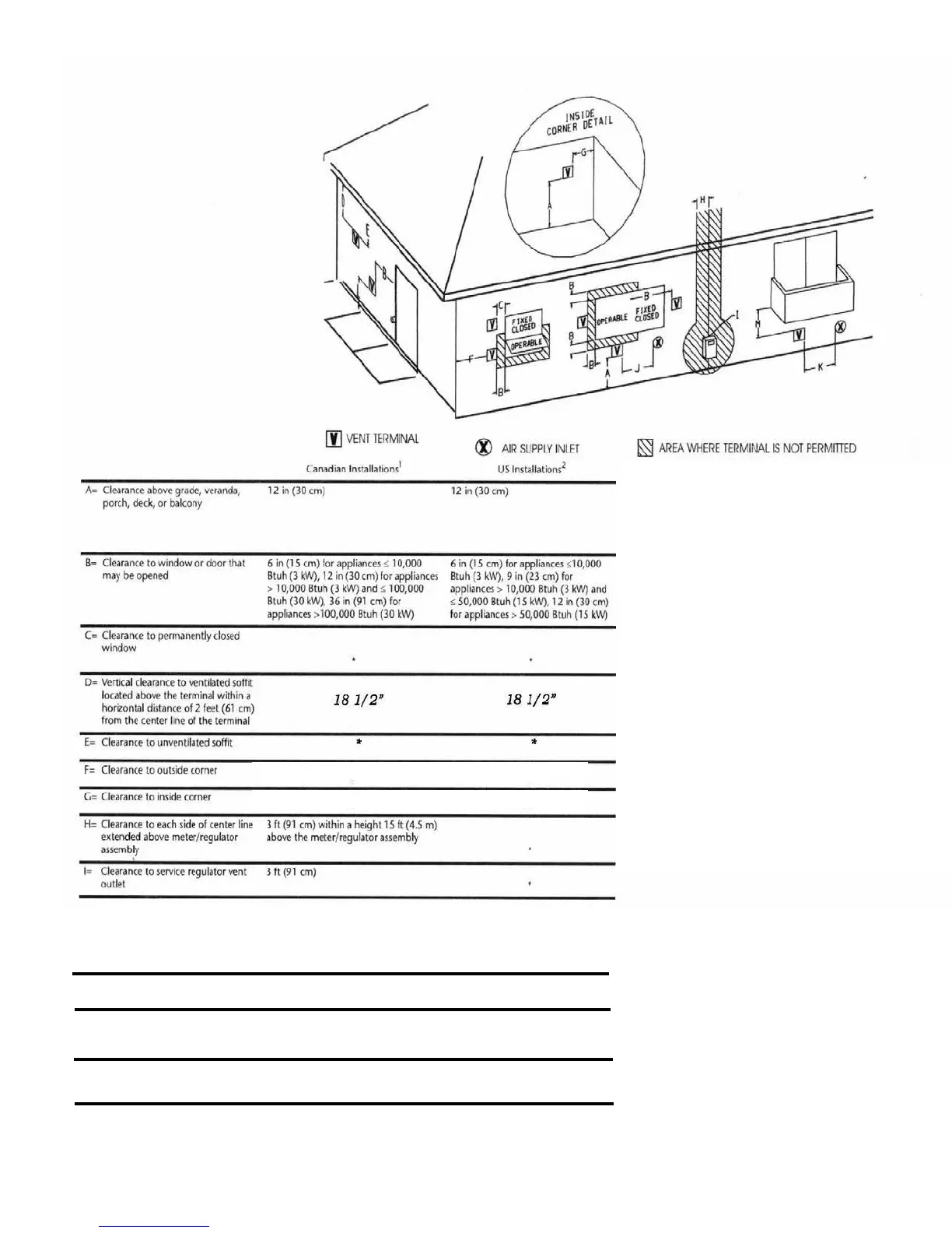 air supply inlet to building or Btuh (3kW), 12 in (30 cm) for Btuh (3kW), 9 in (23 cm) for