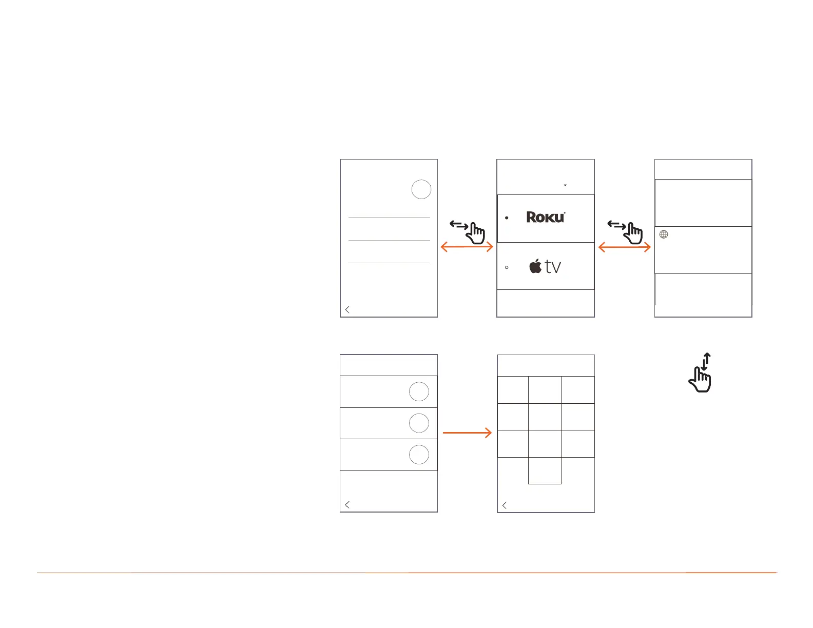 The Pro Remote has several main screens and may vary depending on the Model of the Pro Remote. The diagrams describe general screen navigation.