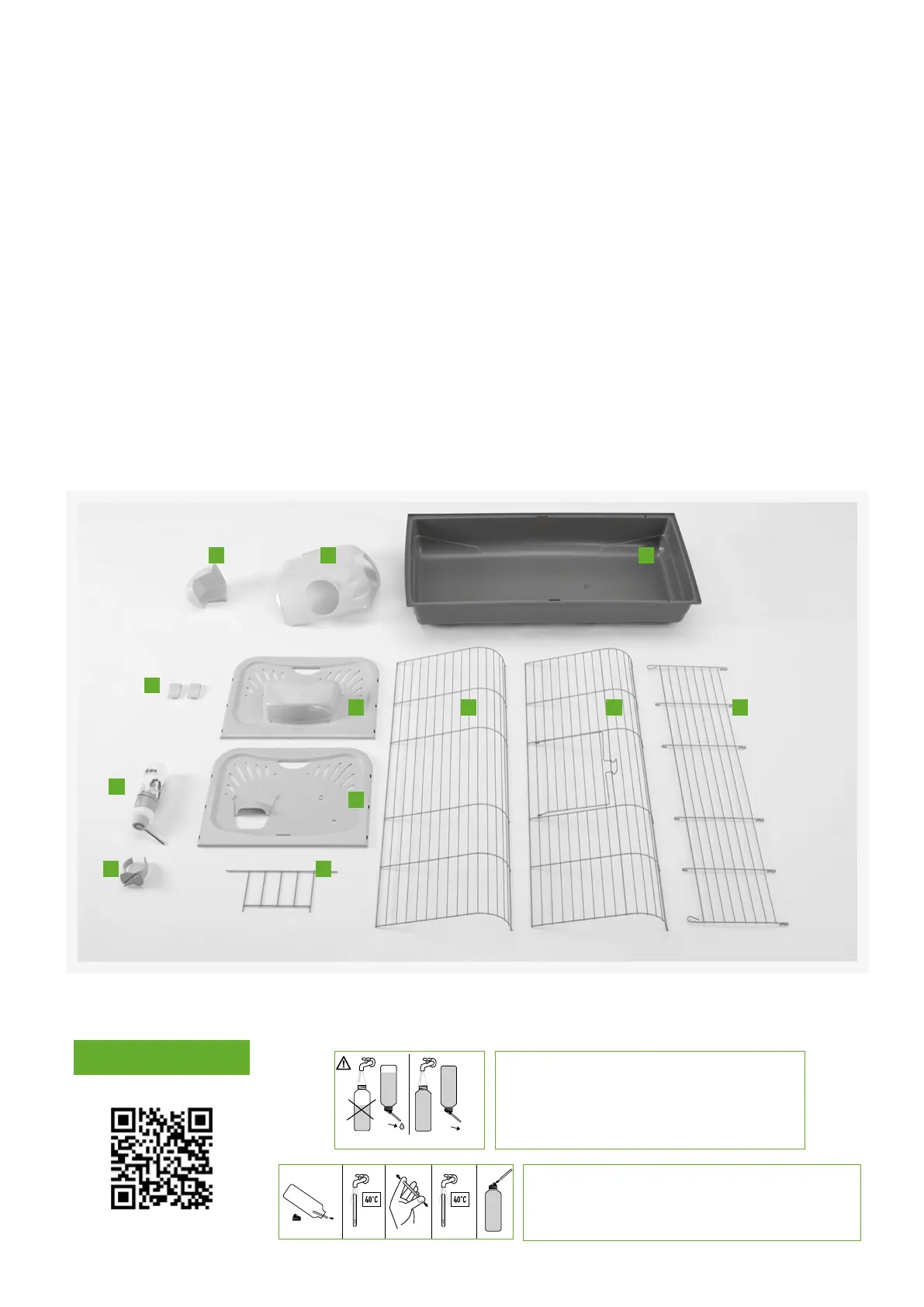 Before you start assembling your cage, please check if you have all the components. If any part is missing or