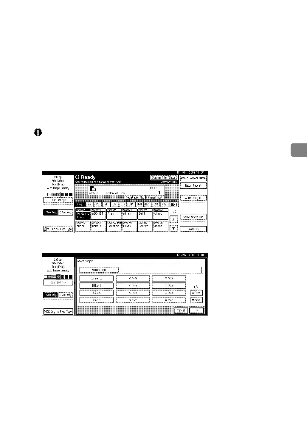 This section explains how to specify the e-mail subject when sending a file by e-