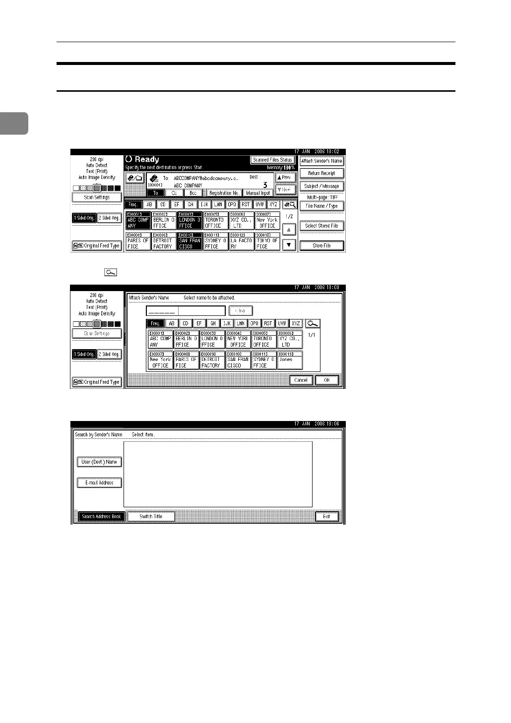 Selecting the Sender by Searching the Machine’s Address Book