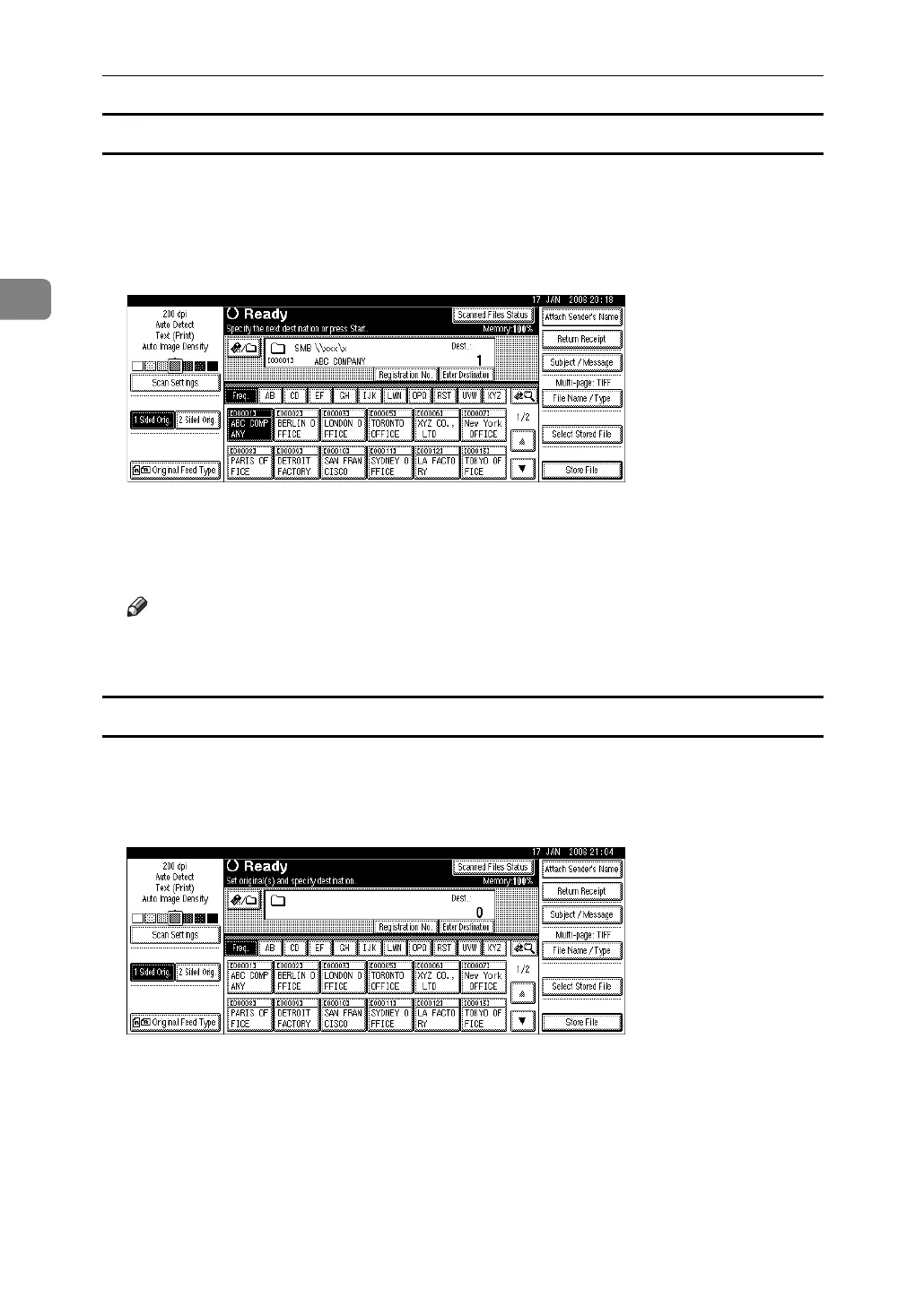 ❒ Depending on the security setting, some destinations may not appear in