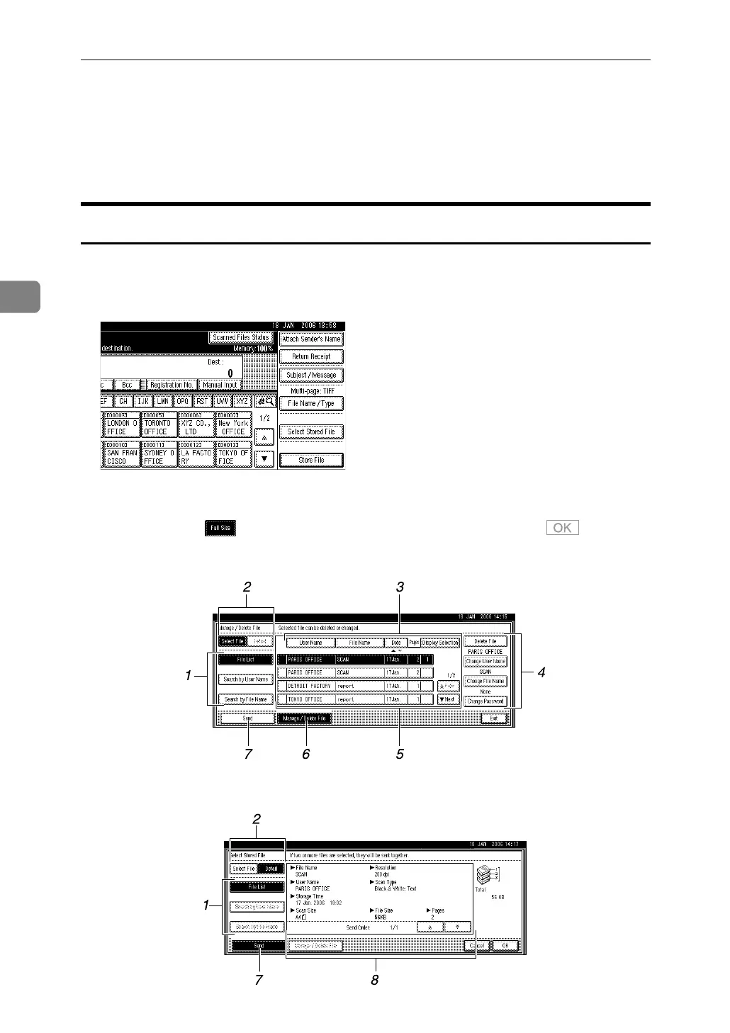 To display the list of stored files, press [Select Stored File] on the initial scanner