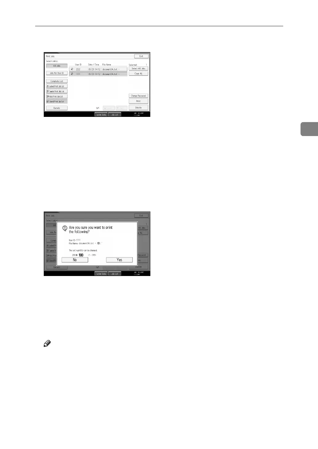 screen appears, and then press [Job Reset]. A Stored Print file is not deleted