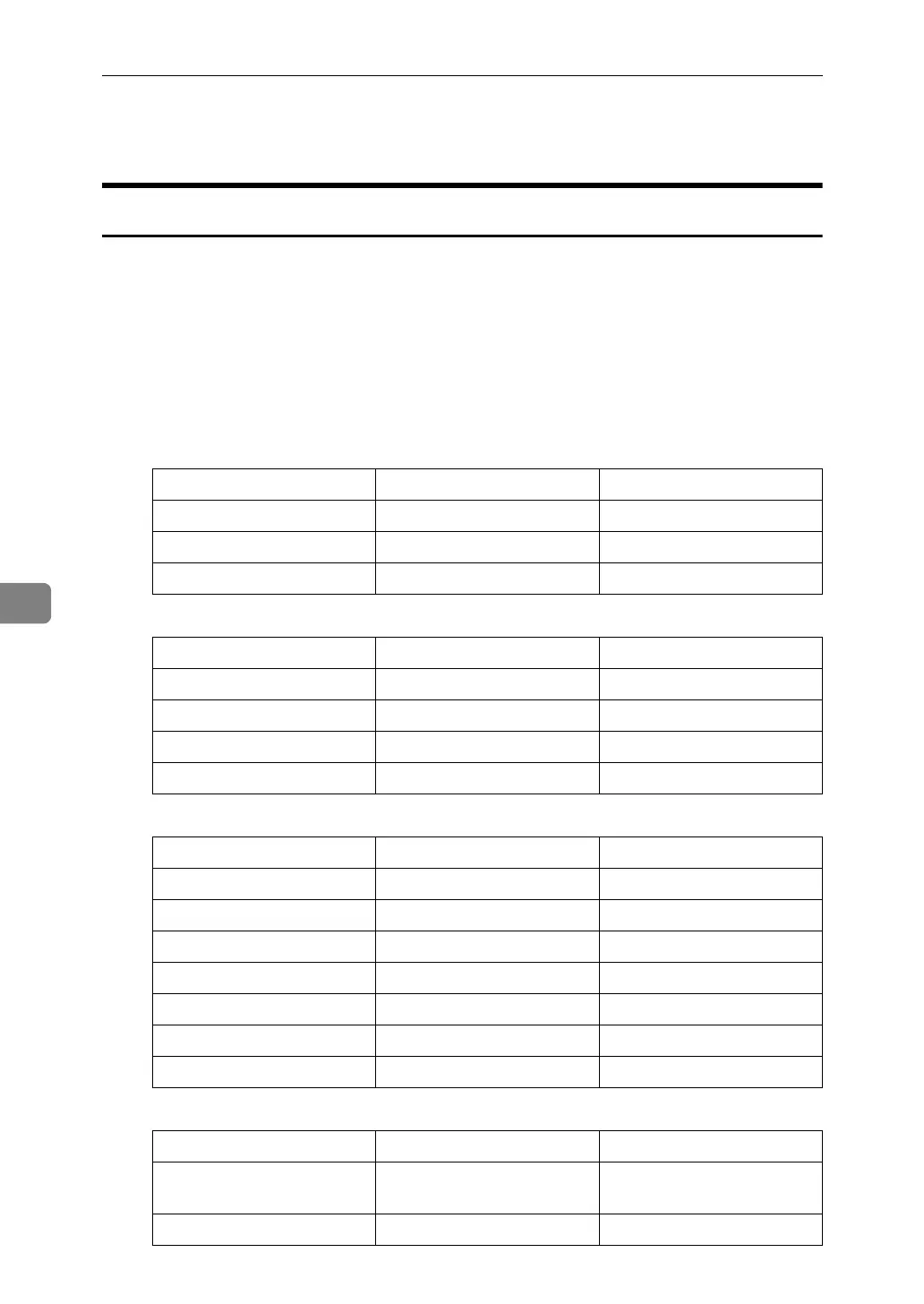 The following tables show Web Image Monitor items that can be viewed or mod-