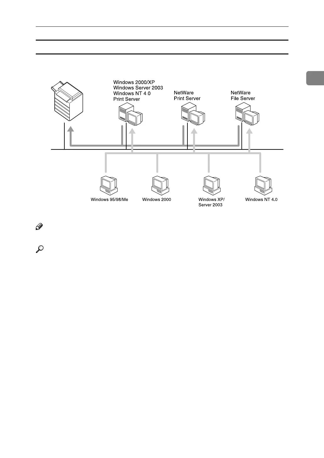 For the NetWare print server and remote printer, see p.34 “Using as a Net-