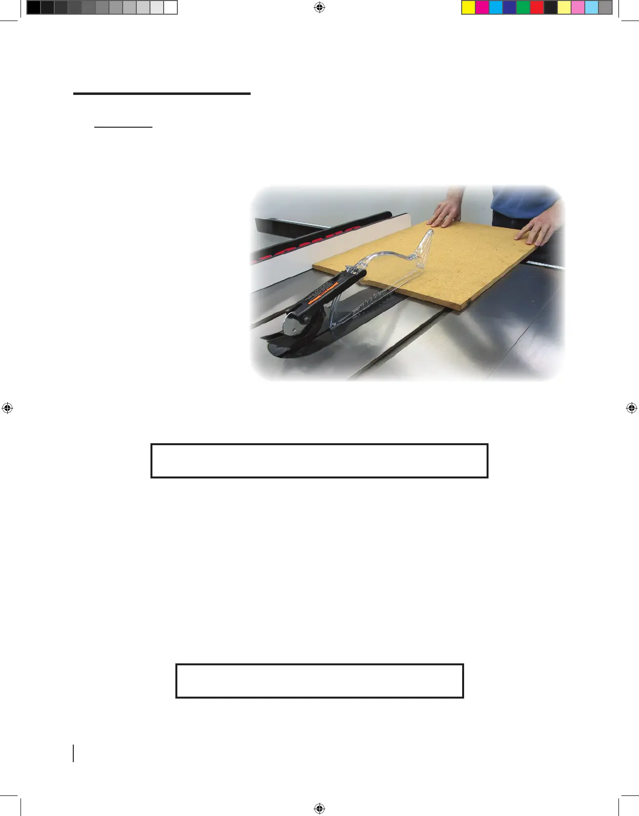 the workpiece past the blade. (See page 75 for instructions on making a push stick.)