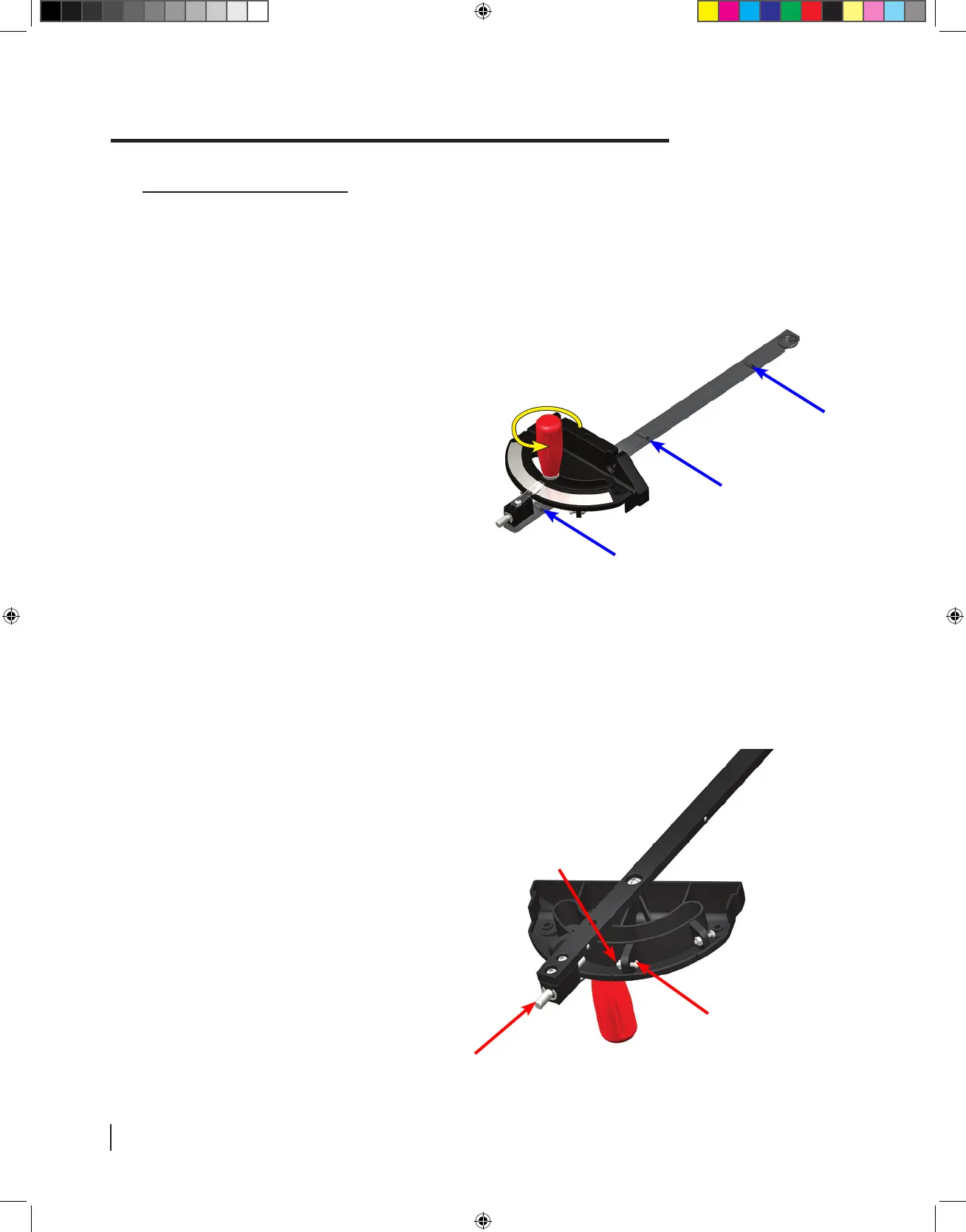 the blade and rotate the miter gauge head until it is flush against the other leg of the square.