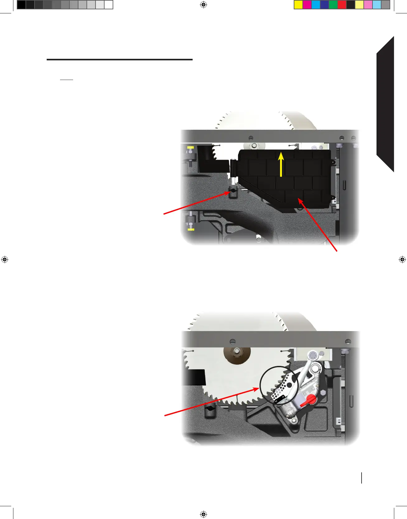 dust shroud door to see the blade and brake cartridge more clearly. To remove the dust shroud door, loosen