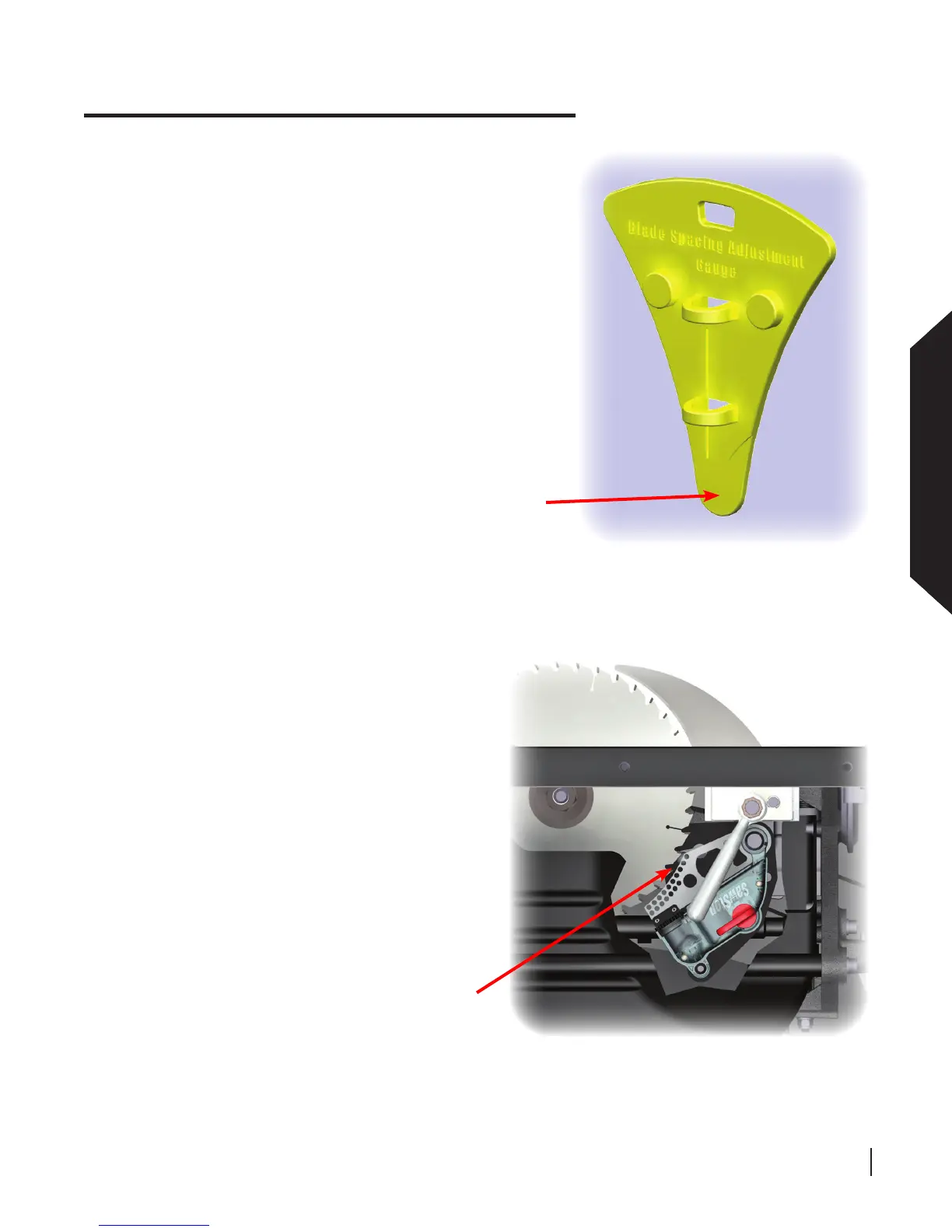adjust the brake position. The blade spacing adjustment gauge