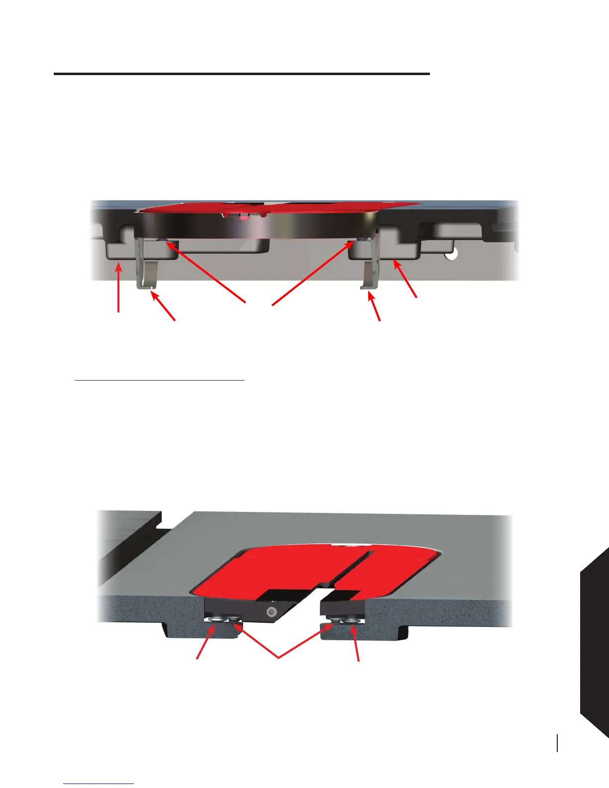 enough clearance to install and remove the table insert without difculty. The height of the lock down screws