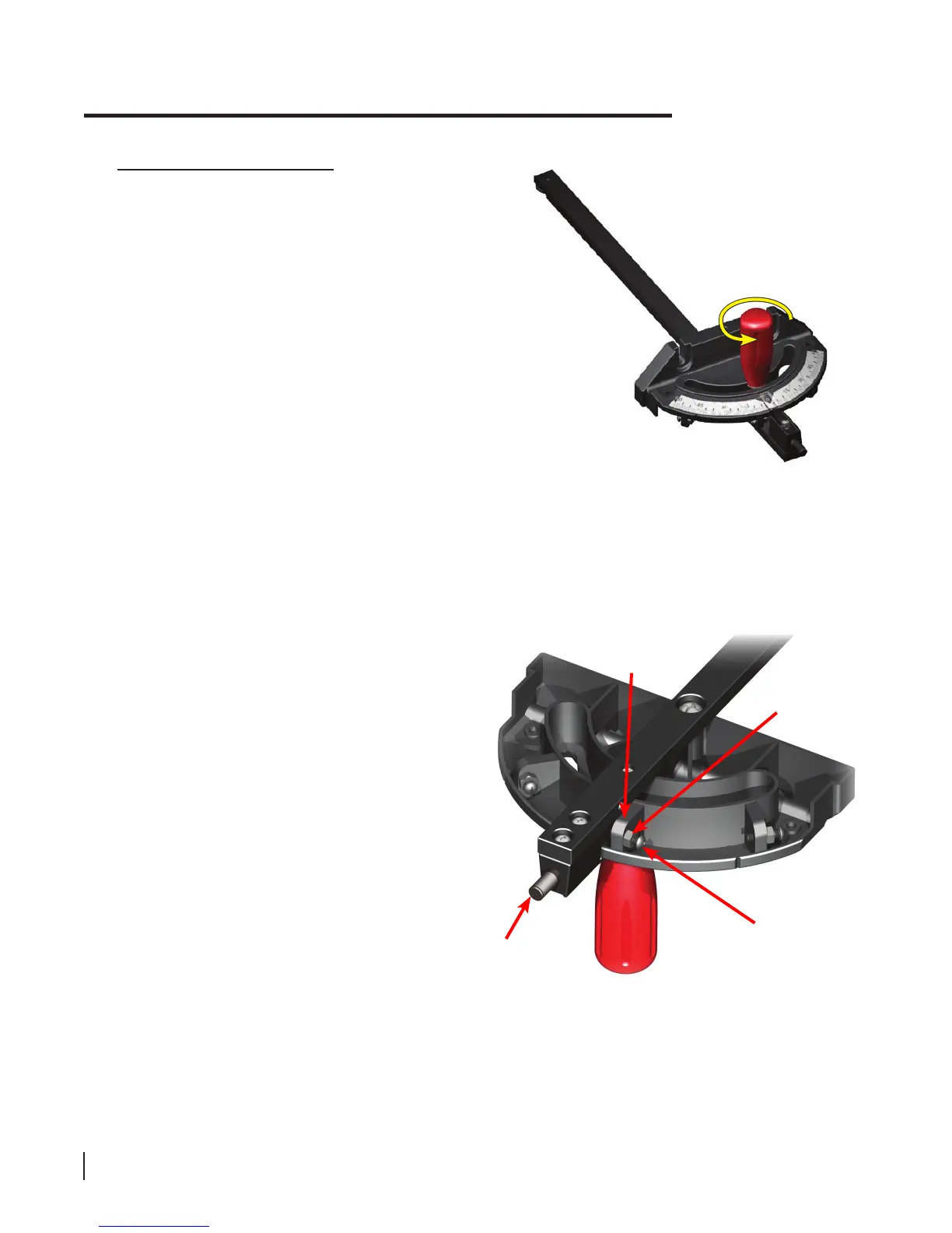 To begin, loosen the miter gauge head by turning