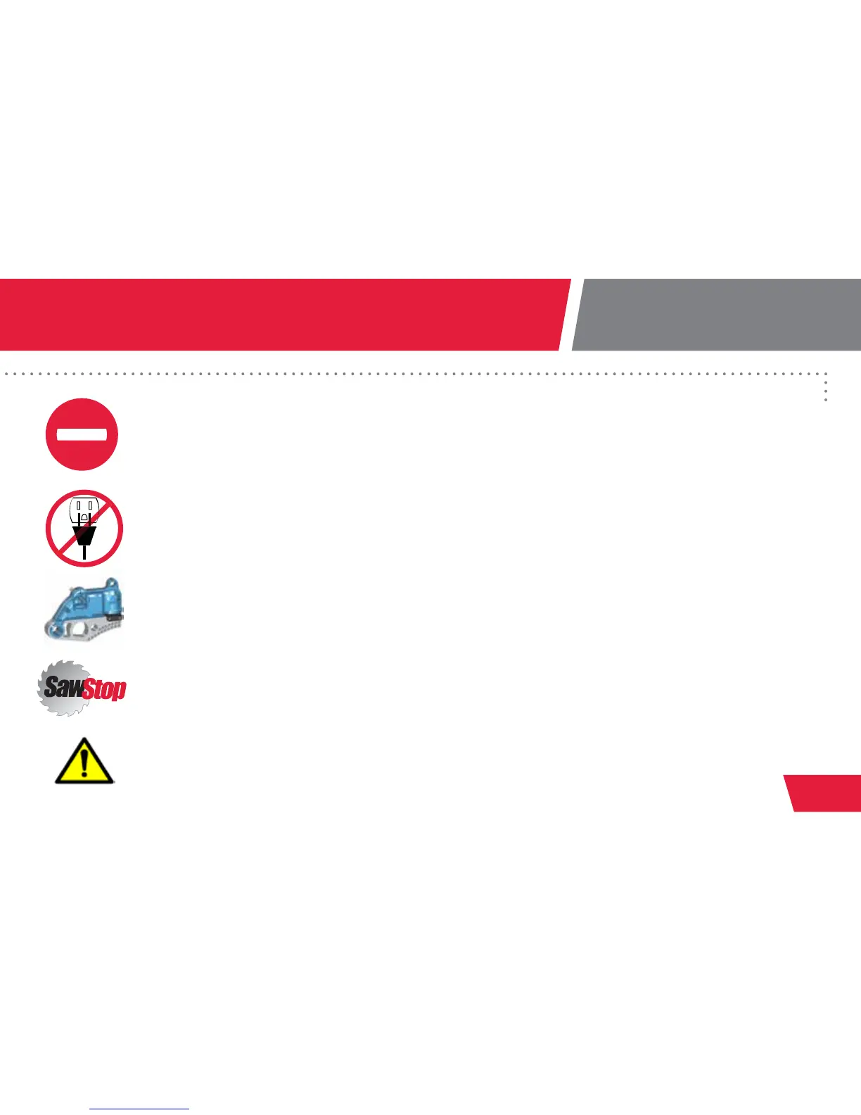 ÚNICAMENTE utilice accesorios SawStop tales como insertos de la mesa, guardas y topes. Otros accesorios podrían