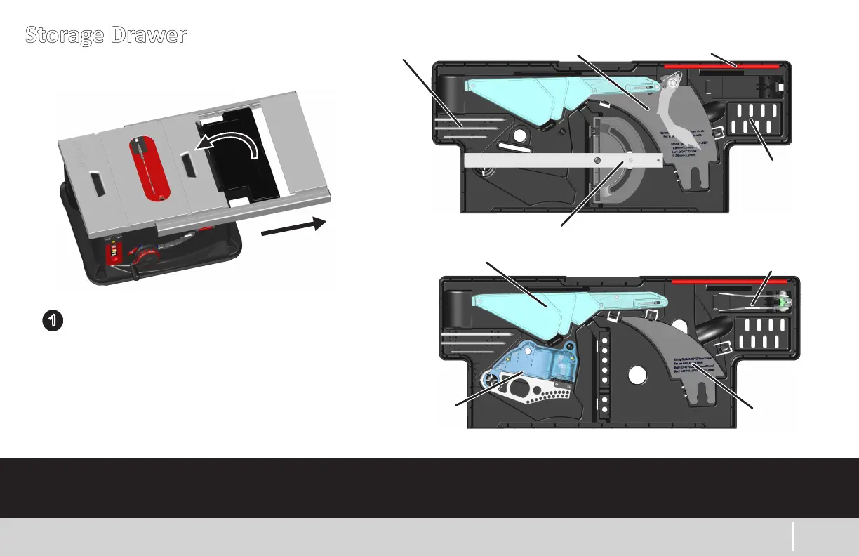 Extend rails to reveal storage drawer.