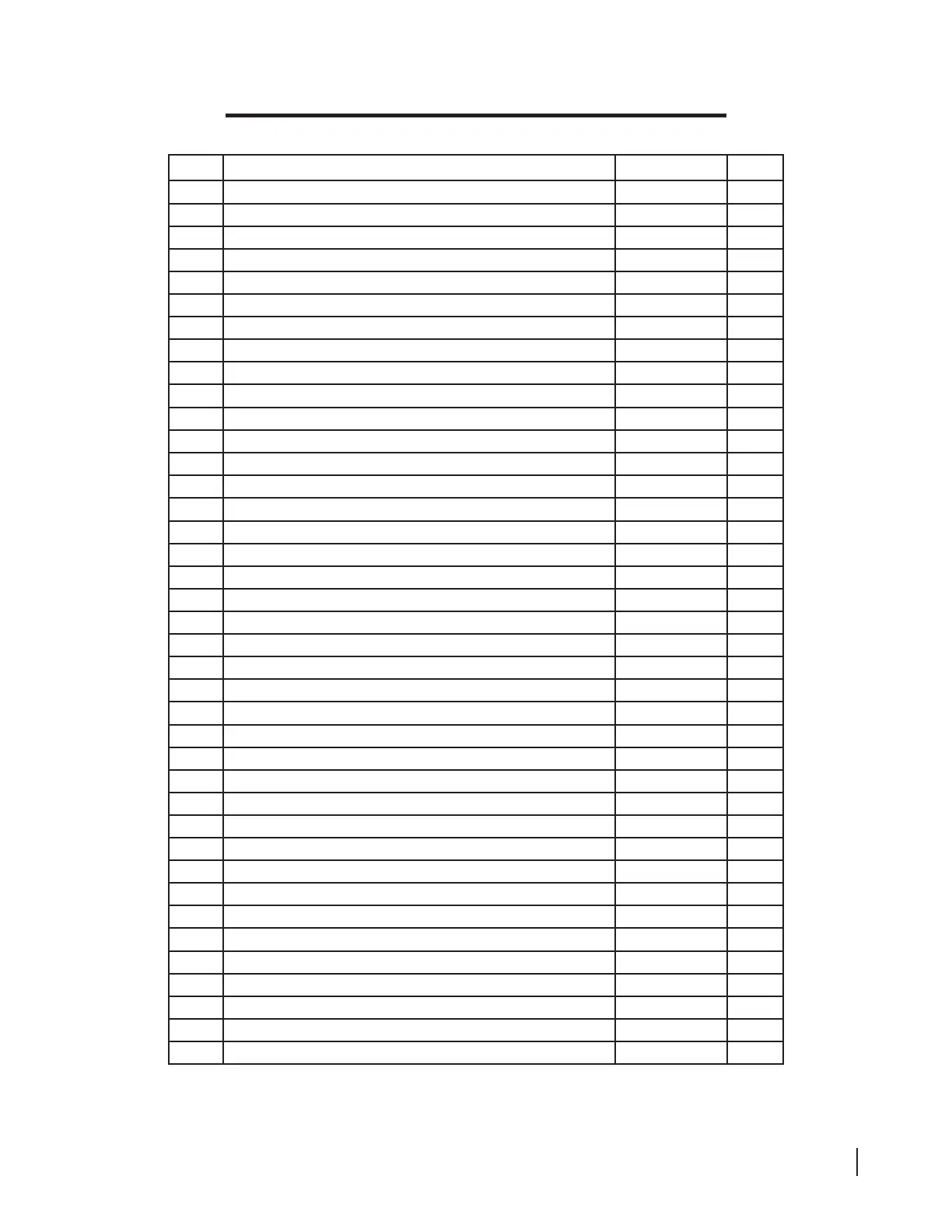 Internal Assembly Parts List