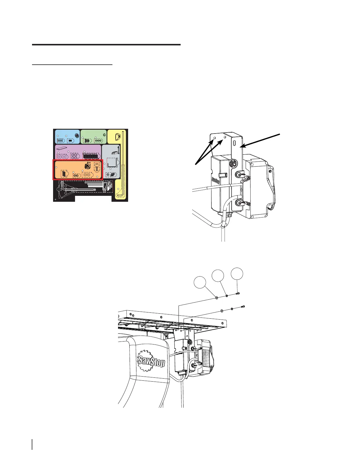 Saw Hardware Pack. Remove two M6 x 20 button head socket screws, two M6 lock washers and two M6