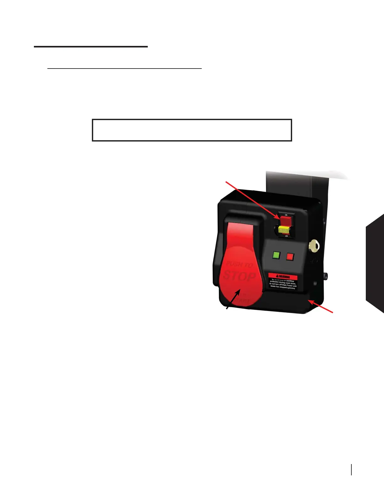 saw is equipped with a main power switch to supply power to the SawStop