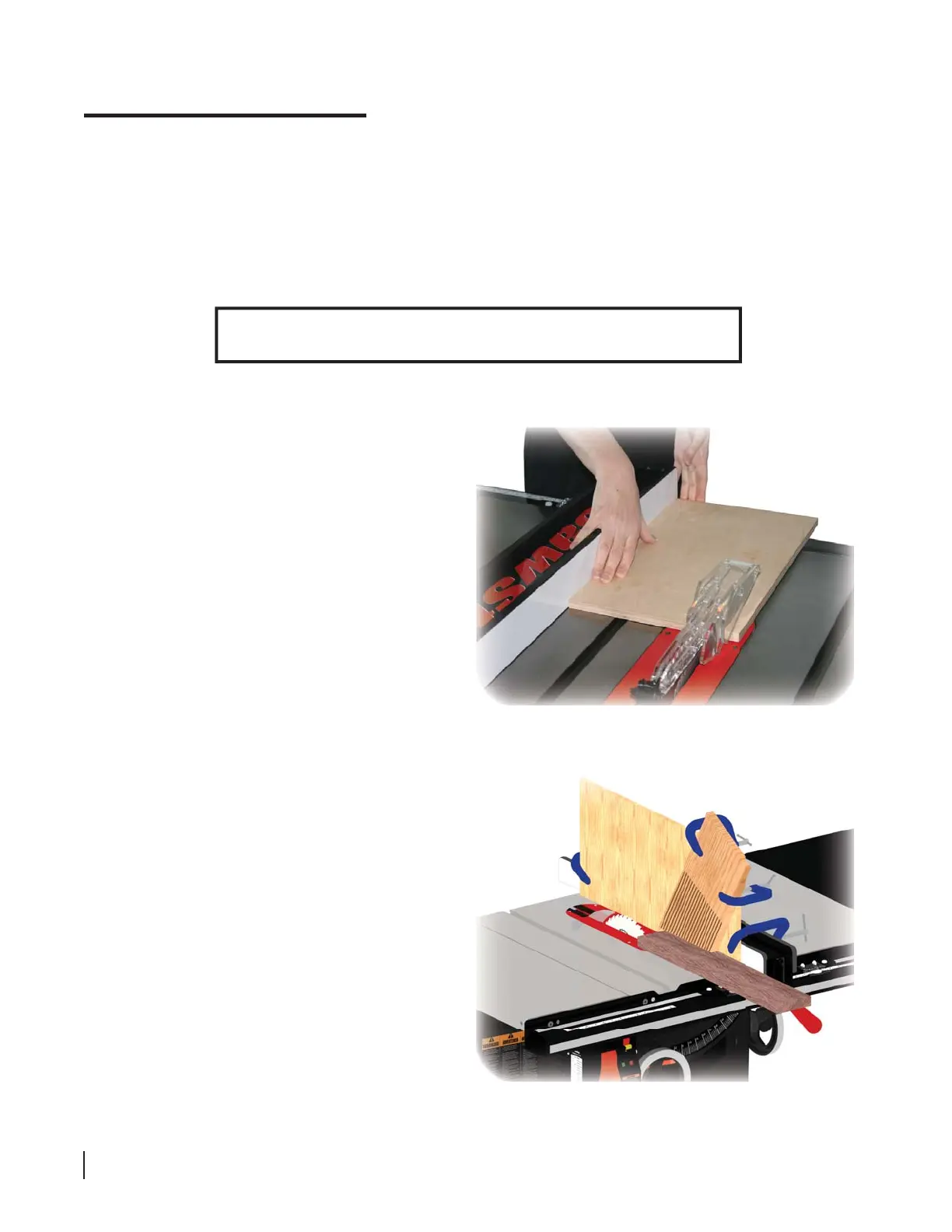 If your cut requires the fence to be positioned too close to the blade to use a push stick, use an auxiliary fence