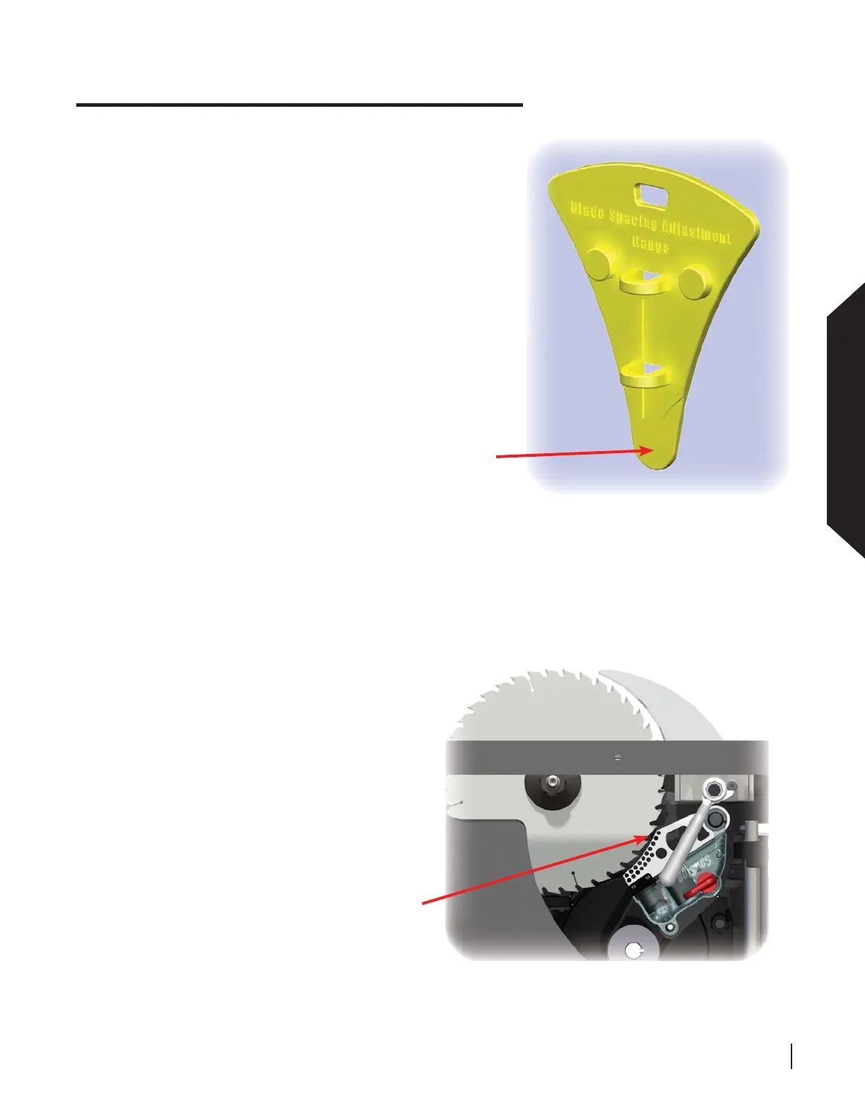 A blade spacing adjustment gauge is included with the tools