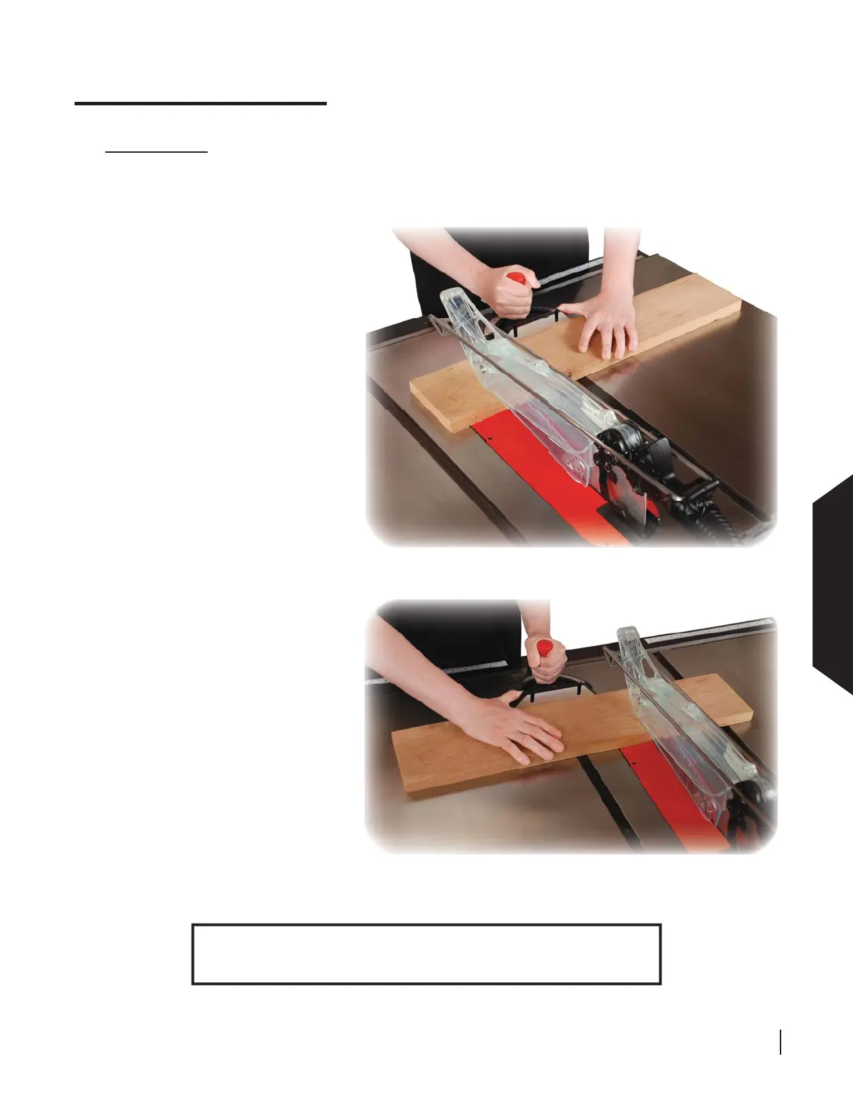 move the rip fence out of contact with the workpiece when cross-cutting to