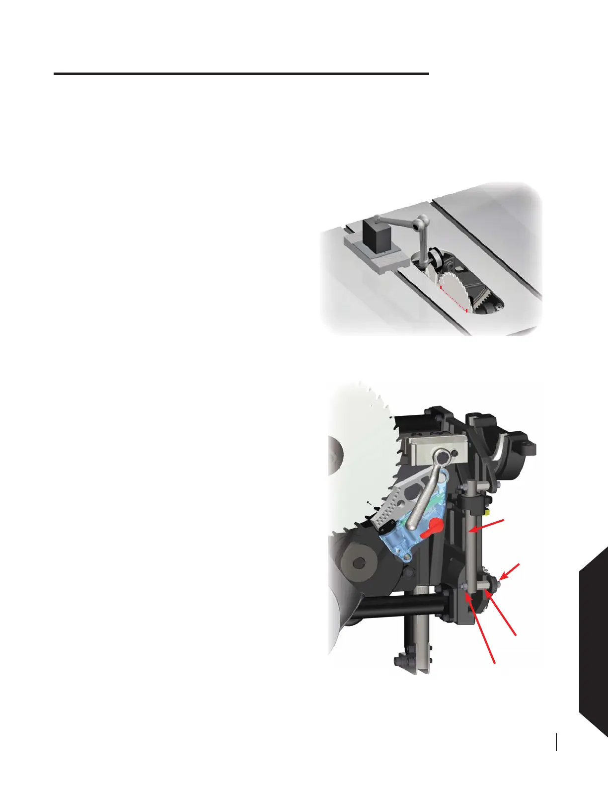 indicator near the right side of the blade. The indicator measurement arm should rest against the blade